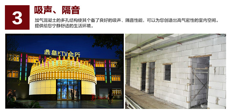 3、 吸聲、隔音:加氣混凝土的多孔結(jié)構(gòu)使其個(gè)備了良好的吸聲、隔音性能,可以為您創(chuàng)造出高氣密性的室內(nèi)空間。提供給您寧靜舒適的生活環(huán)境。