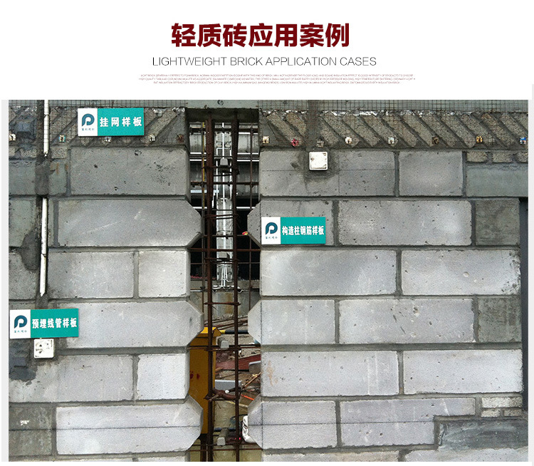 施工性:輕質磚具有良好的可加工性,施工方便簡單,由于塊大、質輕,可以減輕勞動強度,提高施工效率,縮短建設工期。
