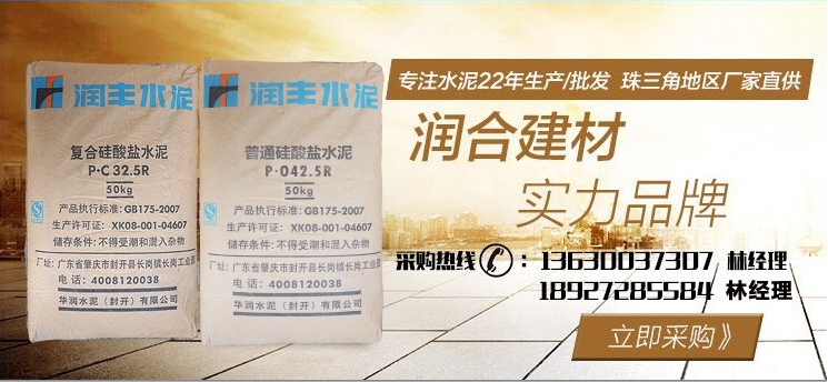 佛山市潤合建材公司 簡稱:廣東潤合。專注水泥22年生產(chǎn)/批發(fā)。主營:PC32.5R、PO42.5R、P1142.5R、PO52.5R華潤水泥、三虎水泥、海螺水泥、飛鹿水泥、路路通水泥、長力水泥。及C20、C25、C30、C35、C40、等C60以下混凝土。各大水泥品牌,在水泥采購商中享有較高的品質(zhì)認(rèn)可,廣東潤合與多家世界500強(qiáng)企業(yè)中鐵、中交、中國建筑和知名房企保利地產(chǎn)、碧桂園地產(chǎn)、龍光地產(chǎn)、美的地產(chǎn)長期合作。各品牌水泥有較大價(jià)格優(yōu)勢,及水泥運(yùn)輸配送優(yōu)勢。佛山潤合水泥建材公司,將以薄利多銷及全心全意服務(wù)每位客戶。